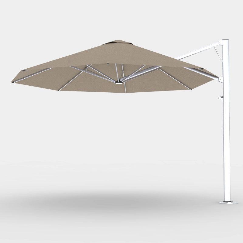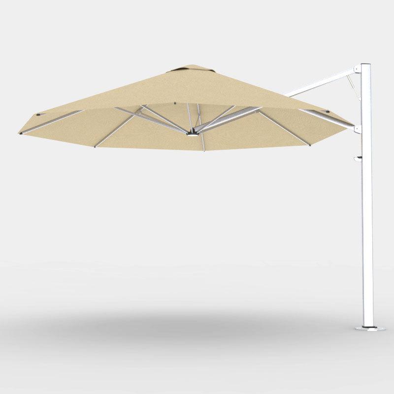 Manufactured in New Zealand from marine-grade aluminum and stainless steel, the Shadowspec Serenity™ 13' Single Canopy Rotating Octagon Cantilever Umbrella can withstand even the most unfavorable outdoor conditions. It features an advanced gas strut and patented sliding mechanism technology, allowing you to deploy or retract your umbrella in just 3 seconds.
