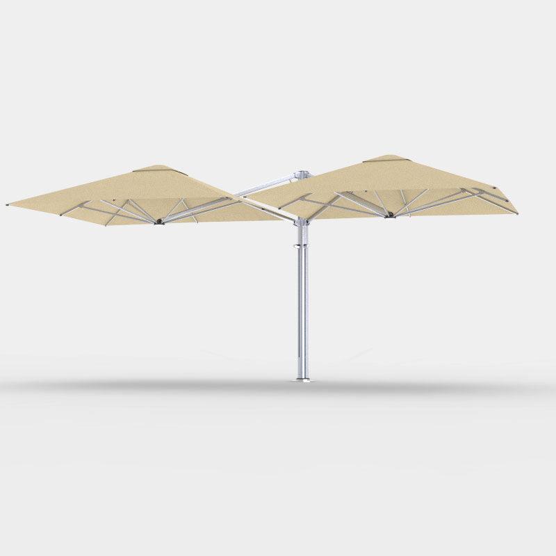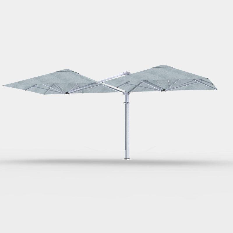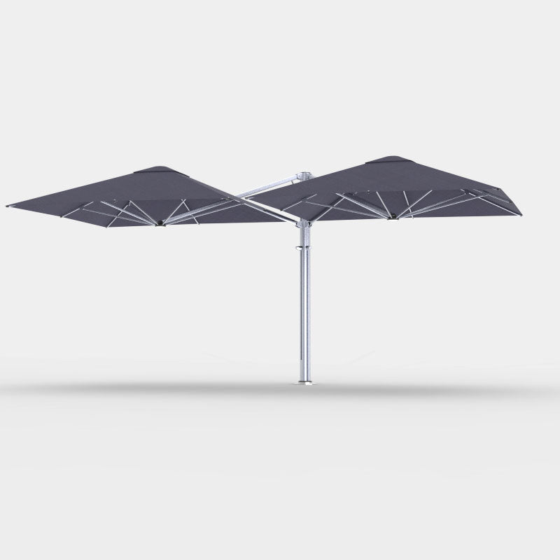 Manufactured in New Zealand from marine-grade aluminum and stainless steel, the Shadowspec Unity™ 10' Square Duo Cantilever Umbrella can withstand even the most unfavorable outdoor conditions. It features an advanced gas strut and patented sliding mechanism technology, allowing you to deploy or retract your umbrella in just 3 seconds. It can also rotate 360° in every size and configuration, so that you can easily adjust the umbrella to provide optimal shade coverage throughout the day.