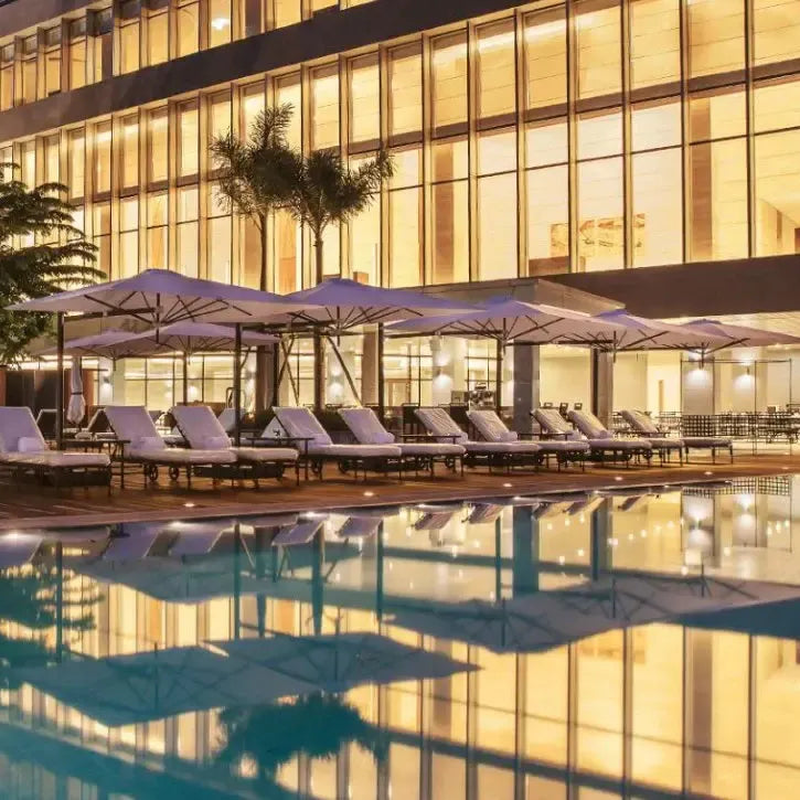 Found in luxury resorts, hotels, and contemporary residences around the world, the Paraflex Mono Offset Umbrella is designed to withstand outdoor elements. Both Solidum and Colorum fabrics offer UV protection, are water-repellent, and are designed to resist wear and tear in harsh environments. For easy maintenance, the canopy can be hand-washed at 30°C, ensuring it remains in pristine condition for years to come.