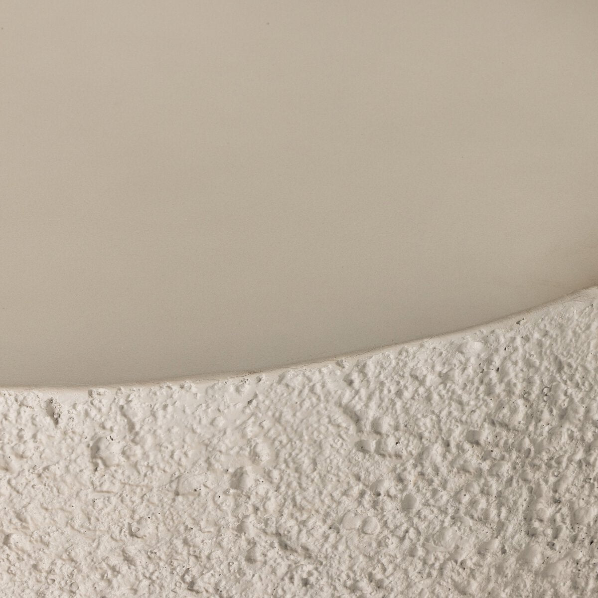 The pumice concrete surface offers rich texture, while the smooth tabletop brings a refined edge. This dual finish creates a tactile and visual statement.