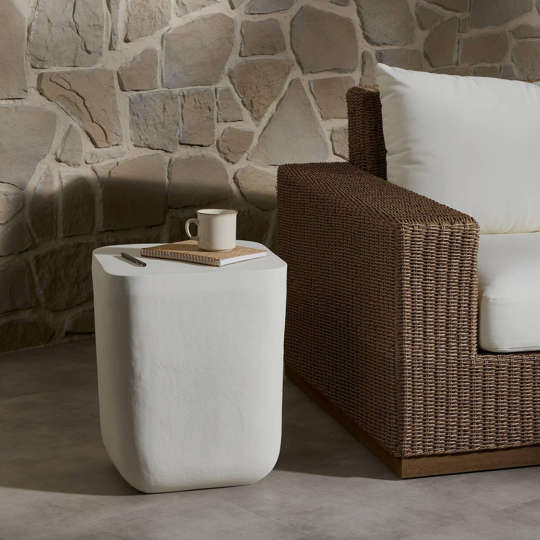 A matte white or aged grey finish highlights aluminum's natural depth for a sleek, simple look with implied movement. Stylish indoors or out. Cover or store indoors during inclement weather and when not in use.