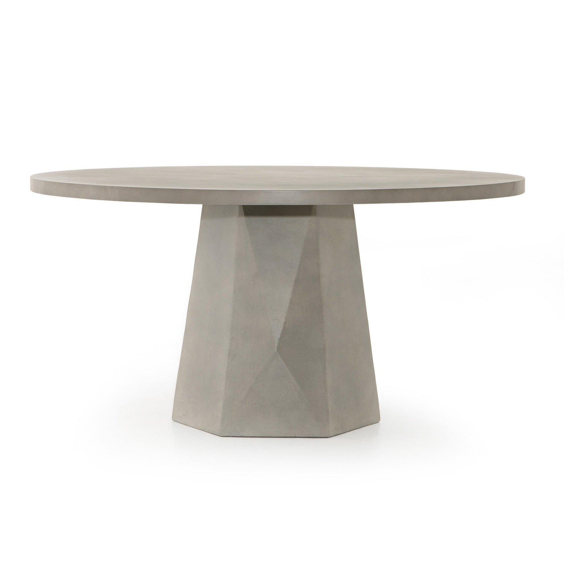 White- or grey-finished concrete forms a faceted base for impact from every angle. A roomy, rounded top is ready to welcome guests indoors or out. Cover or store inside during inclement weather and when not in use.