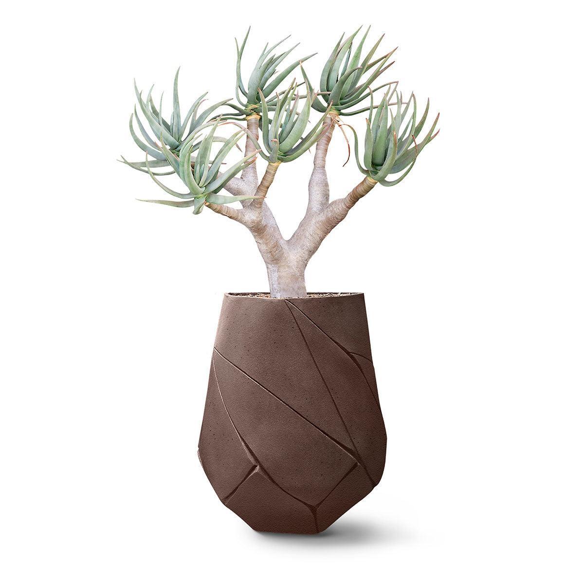 Bhaca is a planter with meaning, sculptural, expressive, and deeply rooted in cultural narrative. Interpreting the ancient Xhosa practice of bhaca (scarification), the form reveals deliberate incisions that trace across the surface like marks of identity and healing. What begins as a quiet object becomes a powerful design statement, bringing history, craft, and material honesty into refined living spaces.