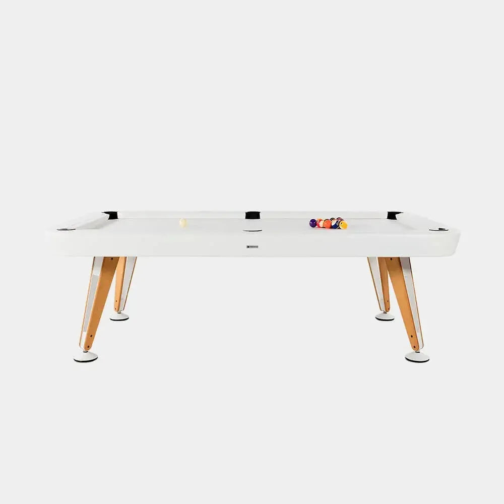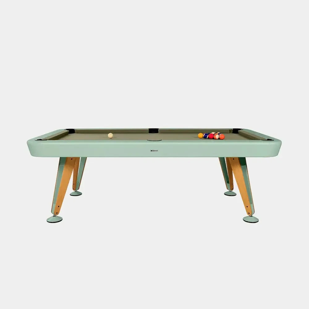 The RS Barcelona Diagonal Outdoor Pool Table is made to turn your garden, terrace, or porch into the ultimate hangout spot. Play under the open sky with its weather-resistant build, including coated steel, iroko wood details, and a fiber cement slab tougher than slate. It mirrors the sleek, bold lines of the game and the iconic streets of Barcelona. A true work of design, it brings elegance and a playful spirit to any space.