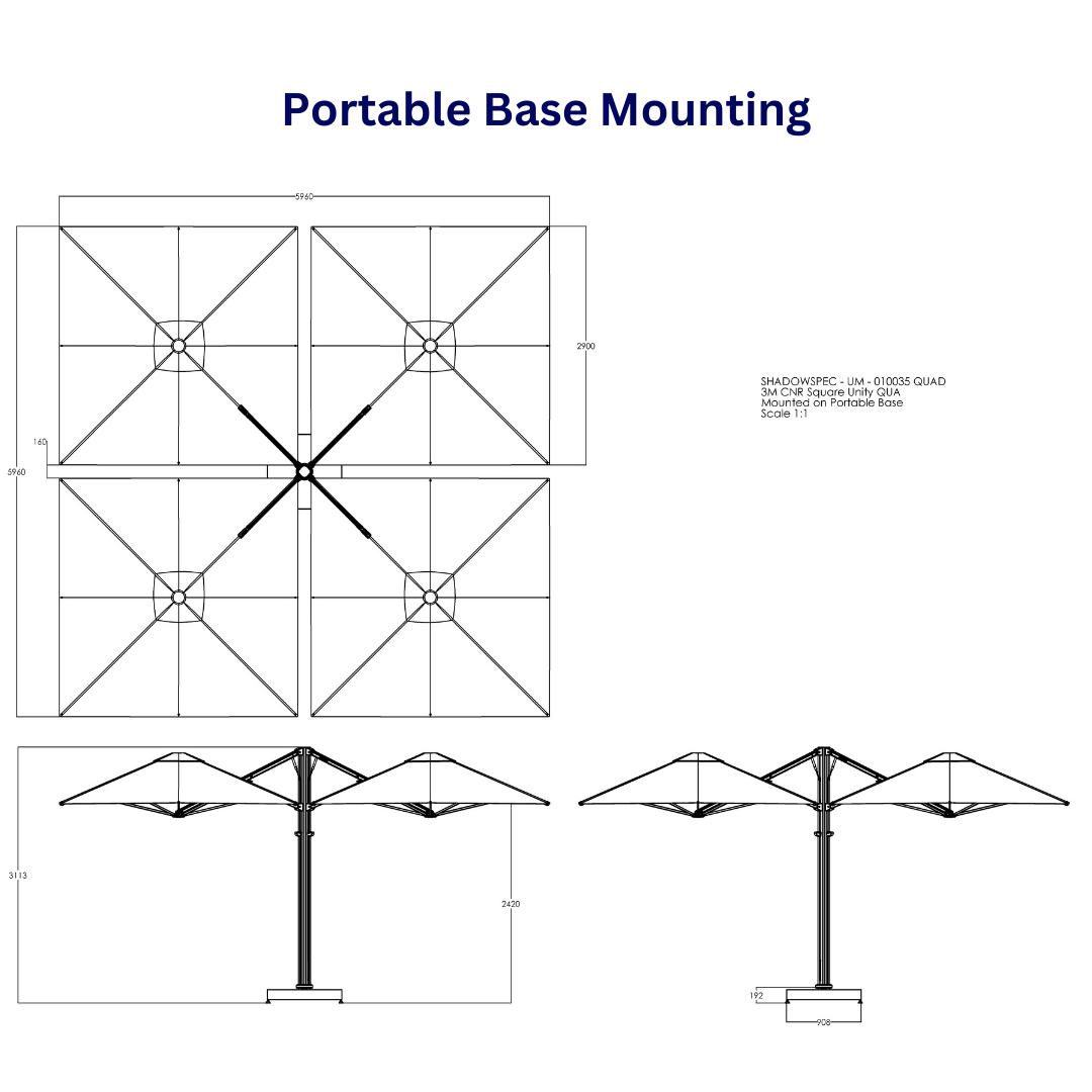 The Shadowspec Unity™ Cantilever Umbrella (10’ Square Quattro) is made from marine-grade aluminum and stainless steel, this cantilever umbrella is built to withstand harsh weather while providing reliable shade. It features an innovative gas strut and patented sliding mechanism so that you can quickly and easily deploy or retract it in just 3 seconds.