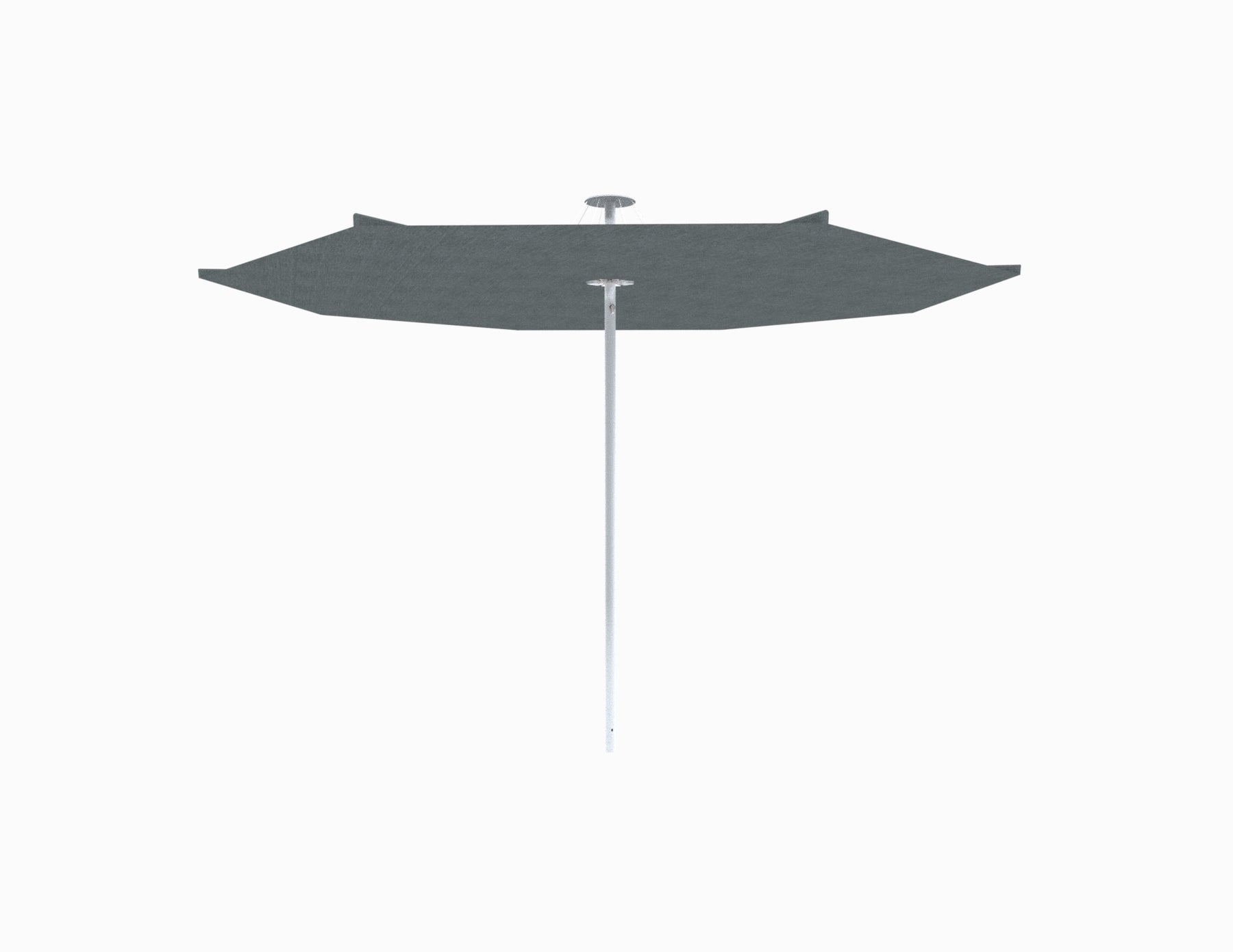 Frame: Galvanized Steel | Naturally Anodized Aluminum (for more information check out our technical data sheet) Canopy: 100% acrylic performance fabrics manufactured by Dickson (Sunbrella) or Tuvatextil (Agora) 260 g/m² solution-dyed acrylic, engineered for superior UV resistance with a colour index of 7/8 (max 8) and finished with water-repellent protection. |