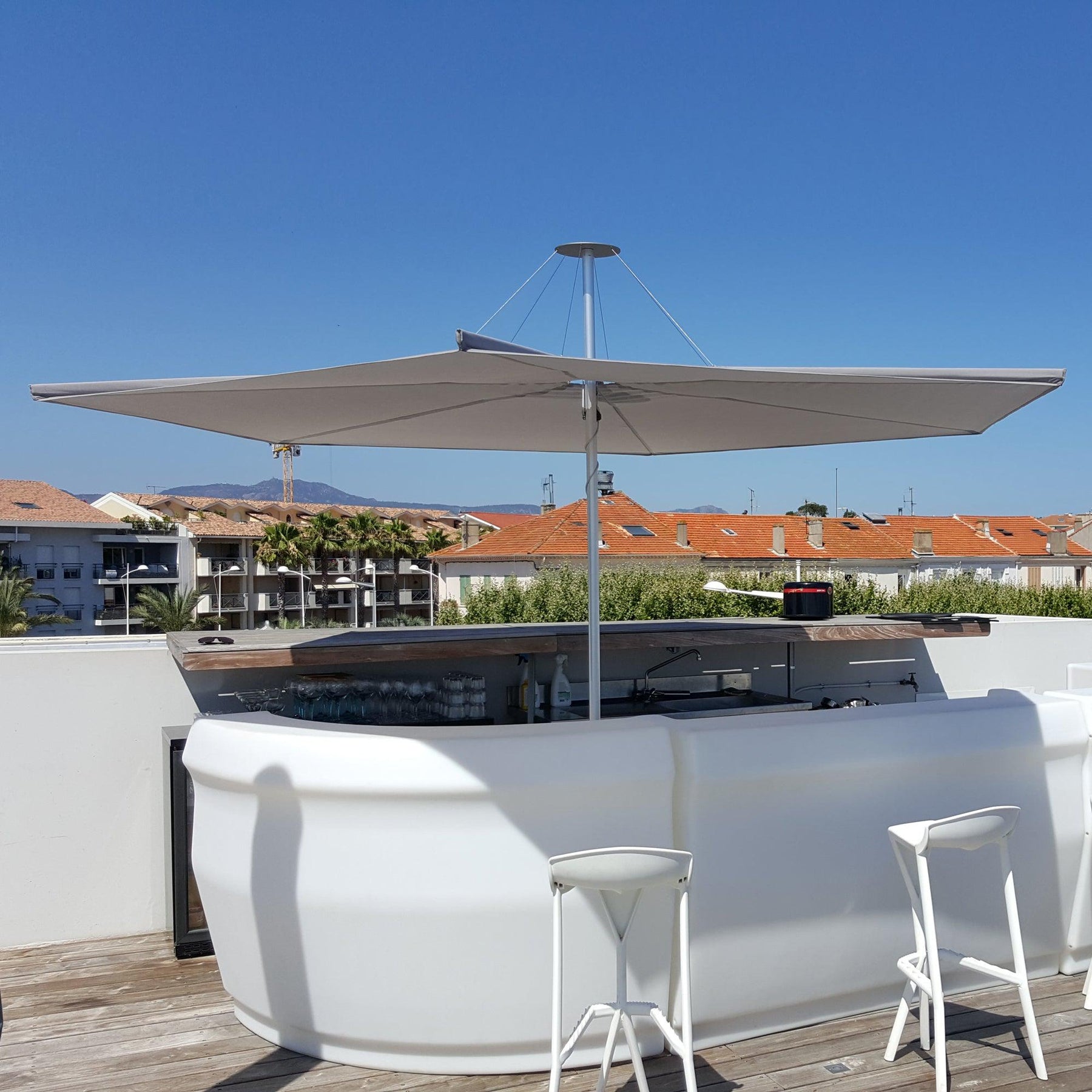 Its center-post silhouette is refined and modern, with a rope system that disappears seamlessly into the pole after opening, preserving the umbrella’s signature minimalist look. Built with premium, weather-resistant materials and high-performance fabrics, the Infina delivers lasting durability while maintaining an ultra-clean aesthetic.