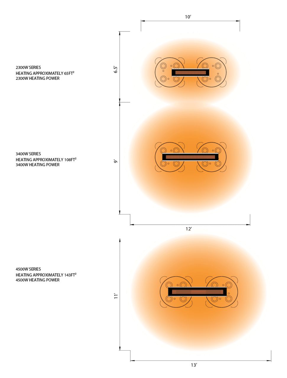 With its ultra-slim, high-quality chassis and Schott tinted ceramic-glass screens, the award-winning Platinum Smart-Heat™ Electric virtually disappears into its surroundings while delivering market-leading radiant heat output that will warm you and not the air – just like the sun. The competition doesn’t even come close. This patio heater was specifically designed for low-clearance, semi-enclosed spaces, and can be mounted with minimal clearance requirements.
