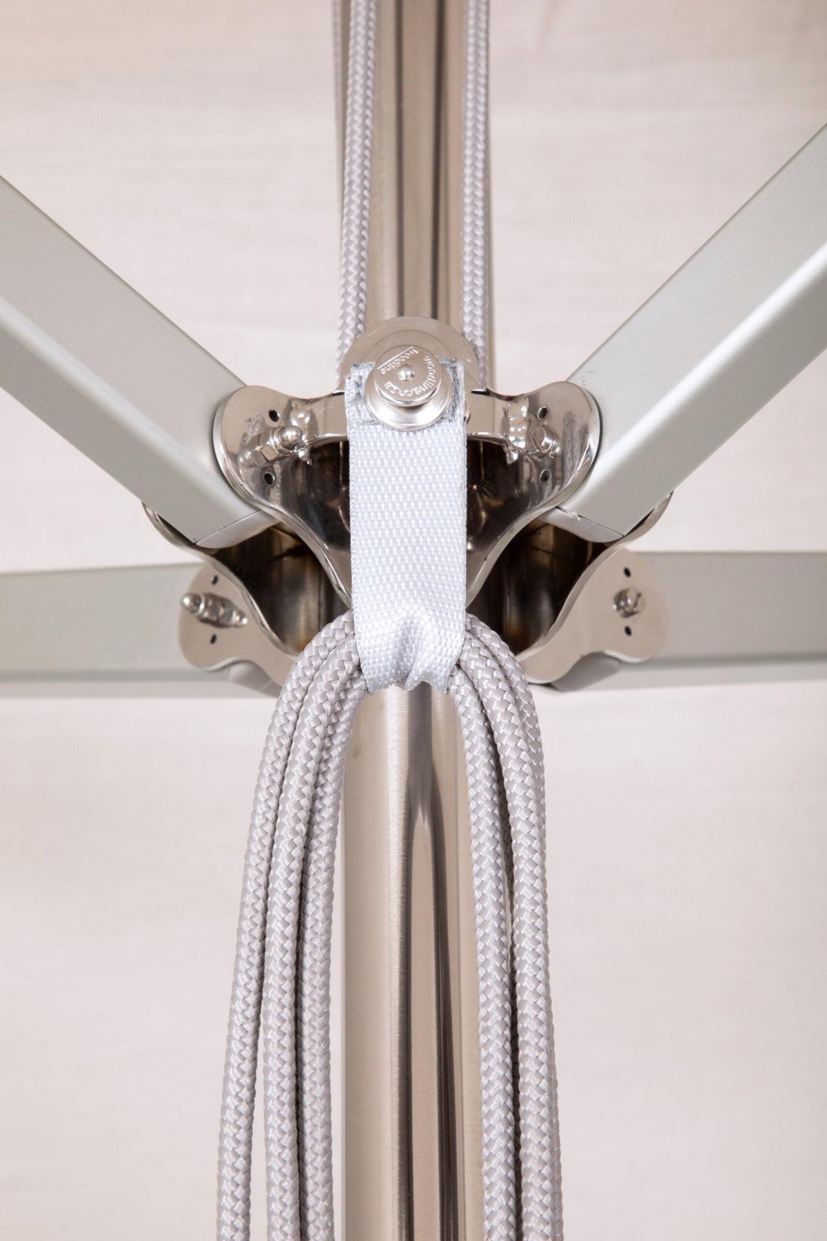 The stainless steel LOXX clip & nylon webbing rope coil make it easy to remove the canopy for cleaning, seasonal storage or quick fabric replacement.