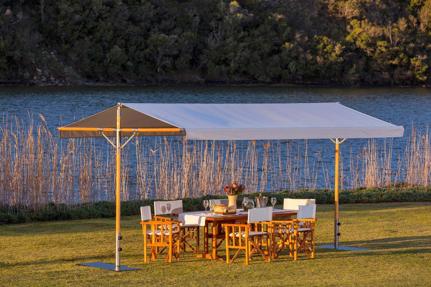 With no central pole blocking views or seating arrangements, the Papillon creates a wide, welcoming shaded area ideal for group dining & lounge settings.