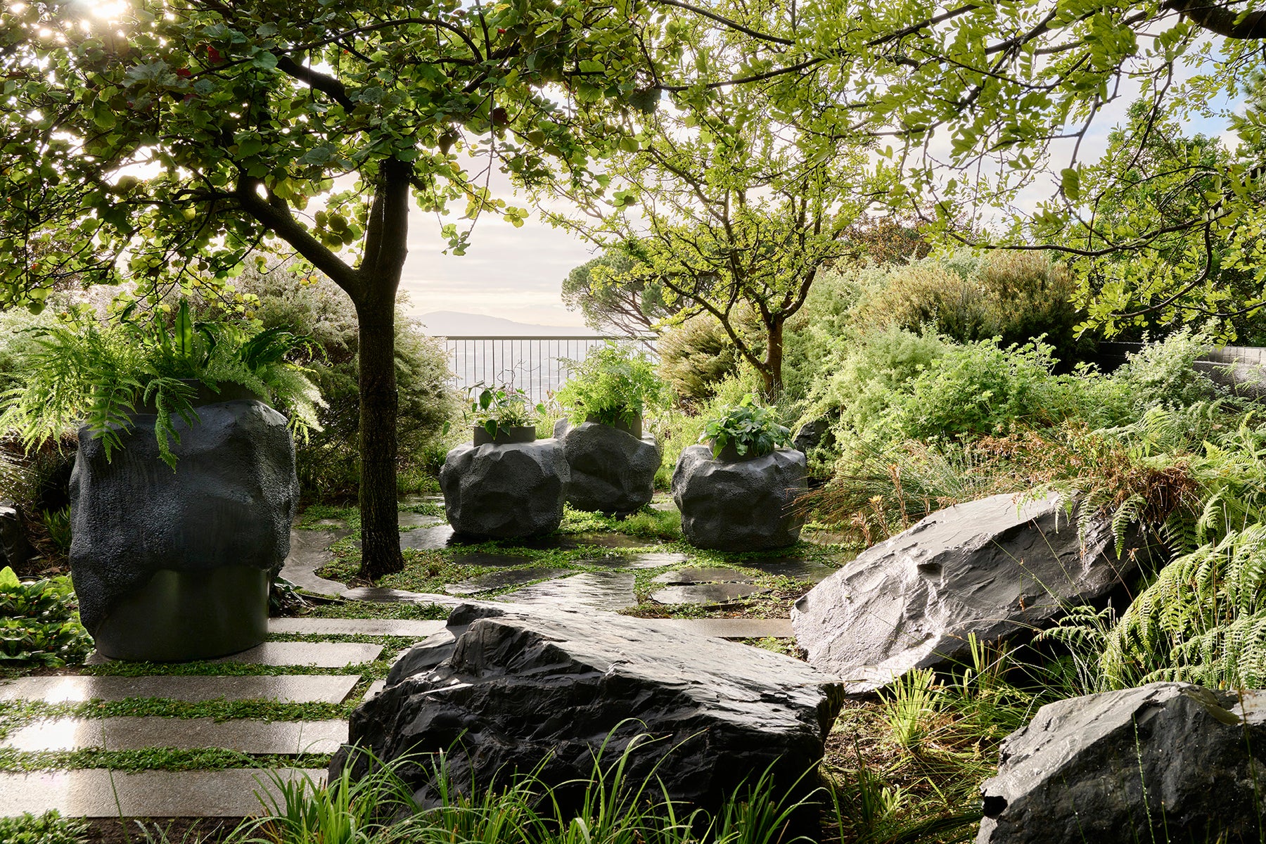 Petra performs confidently as a standalone focal piece and becomes even more compelling when grouped. Used in repetition or varied sizes, it creates rhythm and sculptural continuity across interiors and architectural landscapes.