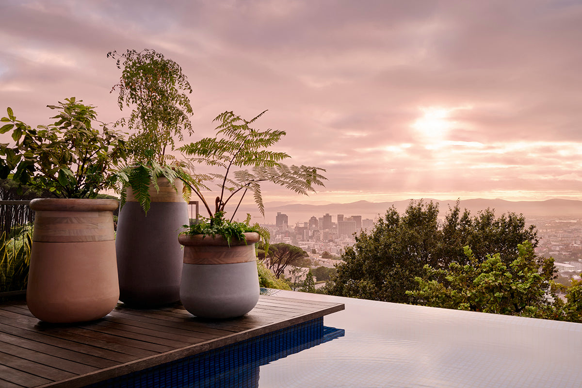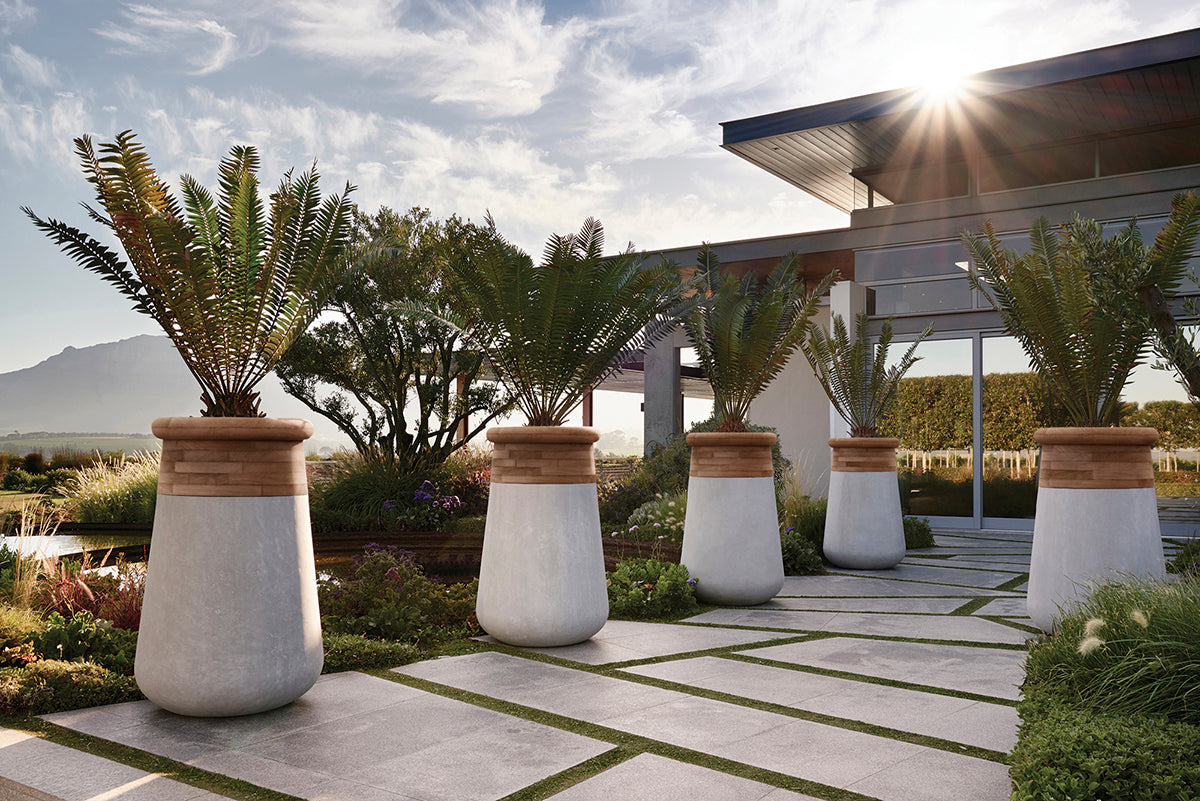 Soma draws its name from the Greek word for “body,” and its form is guided by the quiet strength of a tree trunk. Designed by Laurie Wiid van Heerden, Soma elevates planting with a sculptural, vertical presence, lifting foliage upward and giving it space to breathe. Calm and composed, the silhouette feels natural and architectural at once, introducing rhythm and height to refined living spaces.