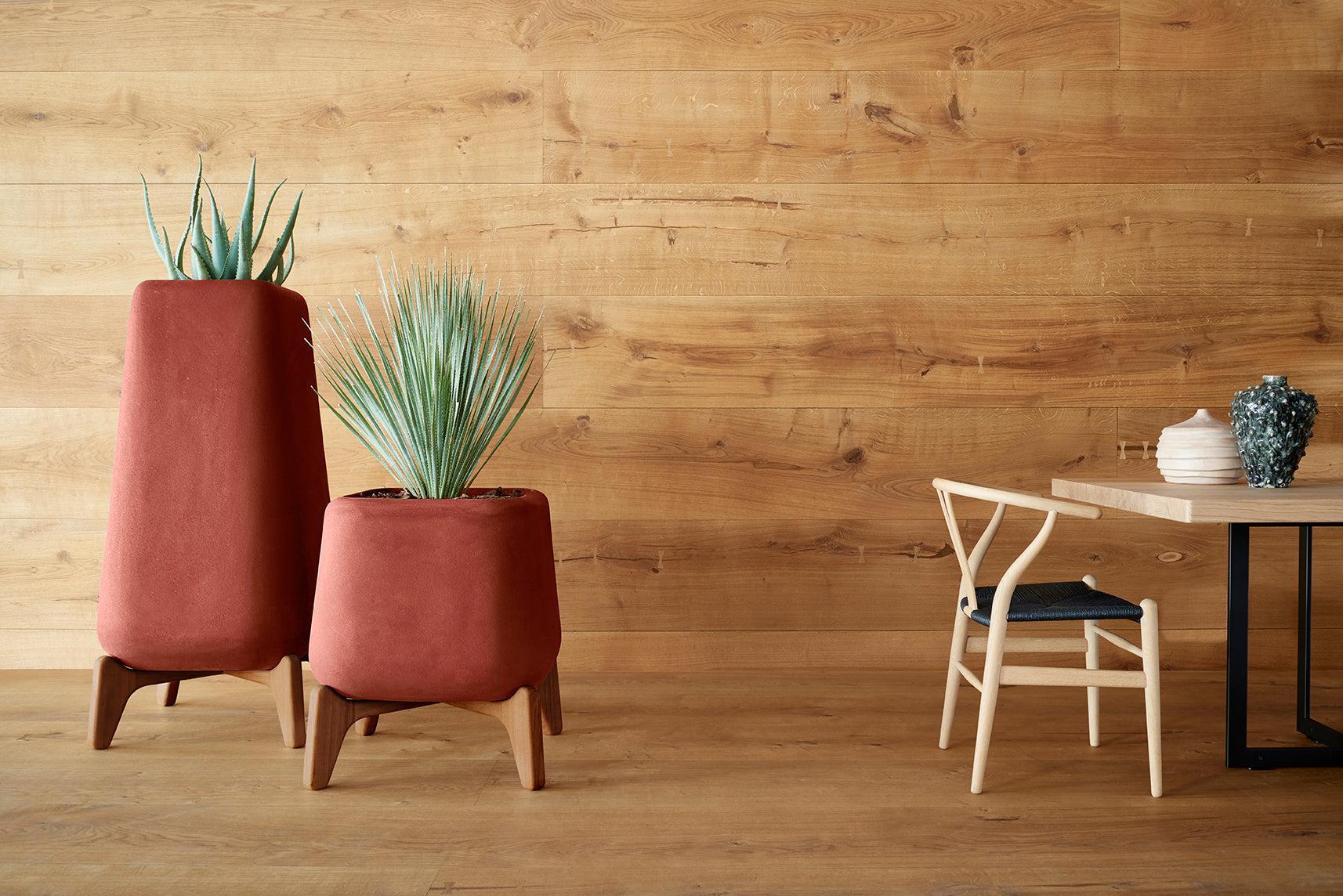 Terra reinterprets classic mid-20th-century planter forms through a contemporary lens. The square body enhances a sense of solidity, while subtle curvature keeps the silhouette soft, approachable, and visually light.