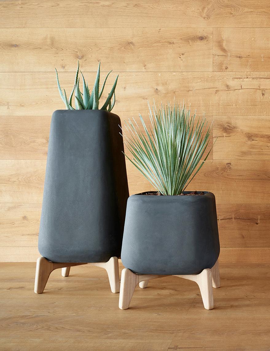 Indigenus Terra Indoor / Outdoor Planter is a study in balance, weight and lightness, earth and elevation. Latin for “earth,” Terra brings a grounded presence to planters raised on sculpted stands, drawing from the mid-century modern tradition while remaining distinctly contemporary. Its square geometry conveys stability, while softly tapered curves and elevated proportions lend a refined, modern clarity. Whether used as a singular statement or arranged in quiet rhythm, Terra adds structure, warmth, and composure to considered living spaces.